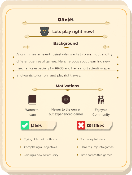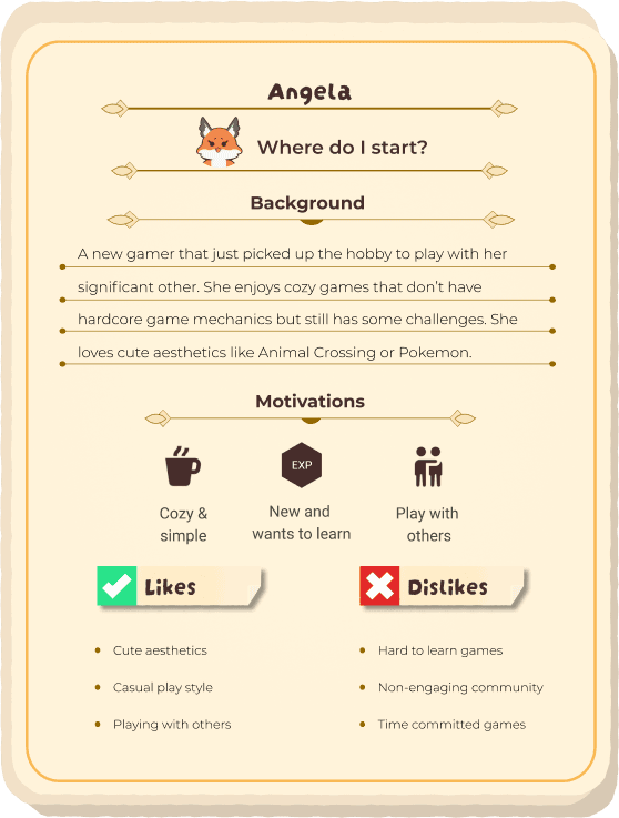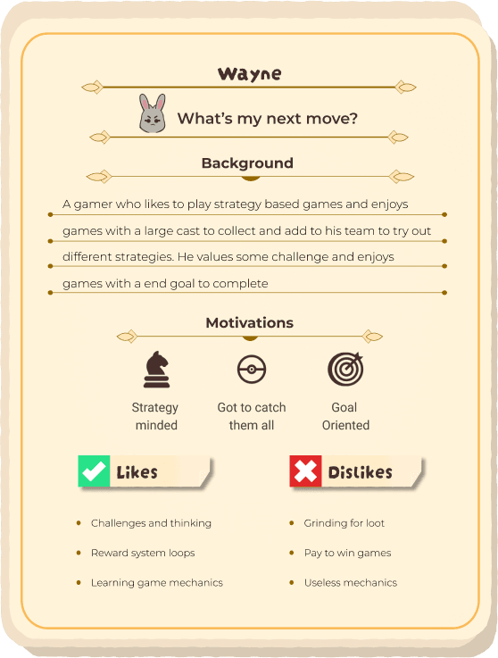 To understand the question, "Who would play this game?", I developed three distinct personas representing potential player types and their motivations