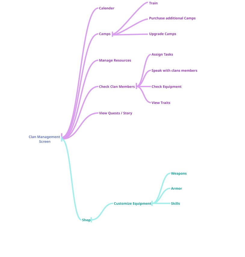 This blueprint guided the design decisions I made for the prototype, helping me determine what content and navigation elements were needed for the primary Clan Management Screen.