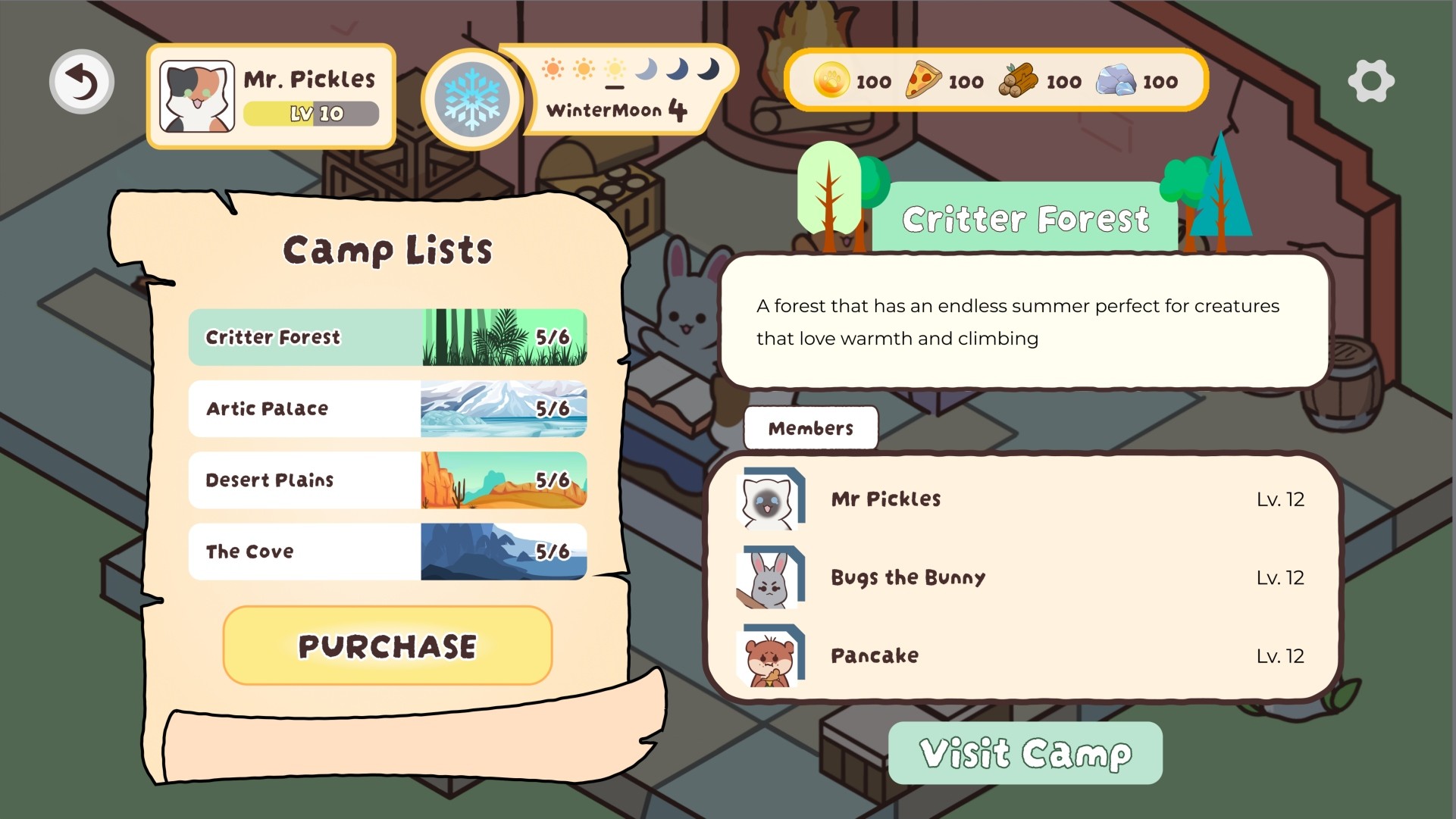 Clan Quest is a concept game that blends strategy, base management, and social interaction. Players assume the role of a Clan Leader guiding a diverse group of animal members with the objective of growing their clan's prestige throughout the kingdom.