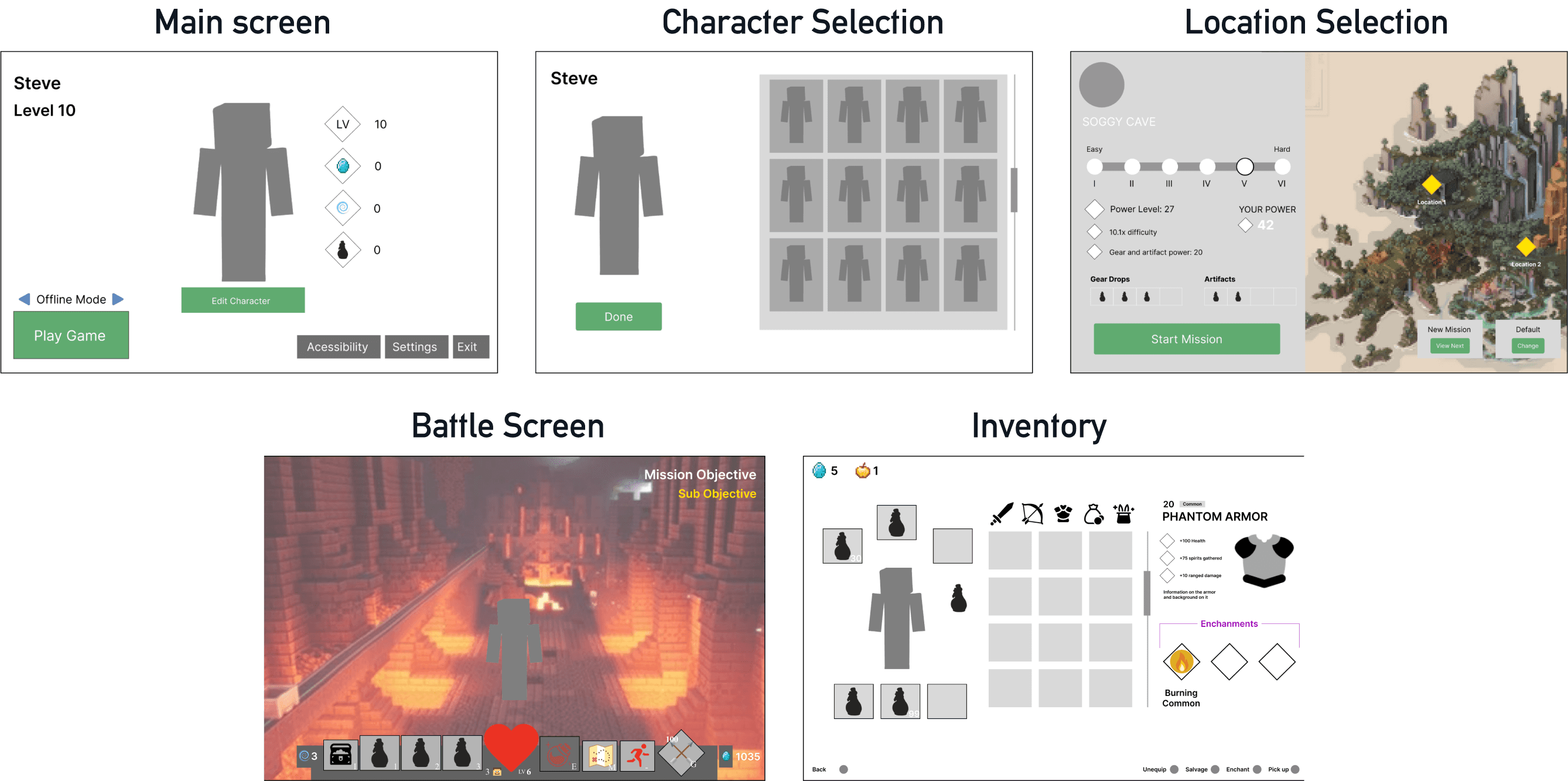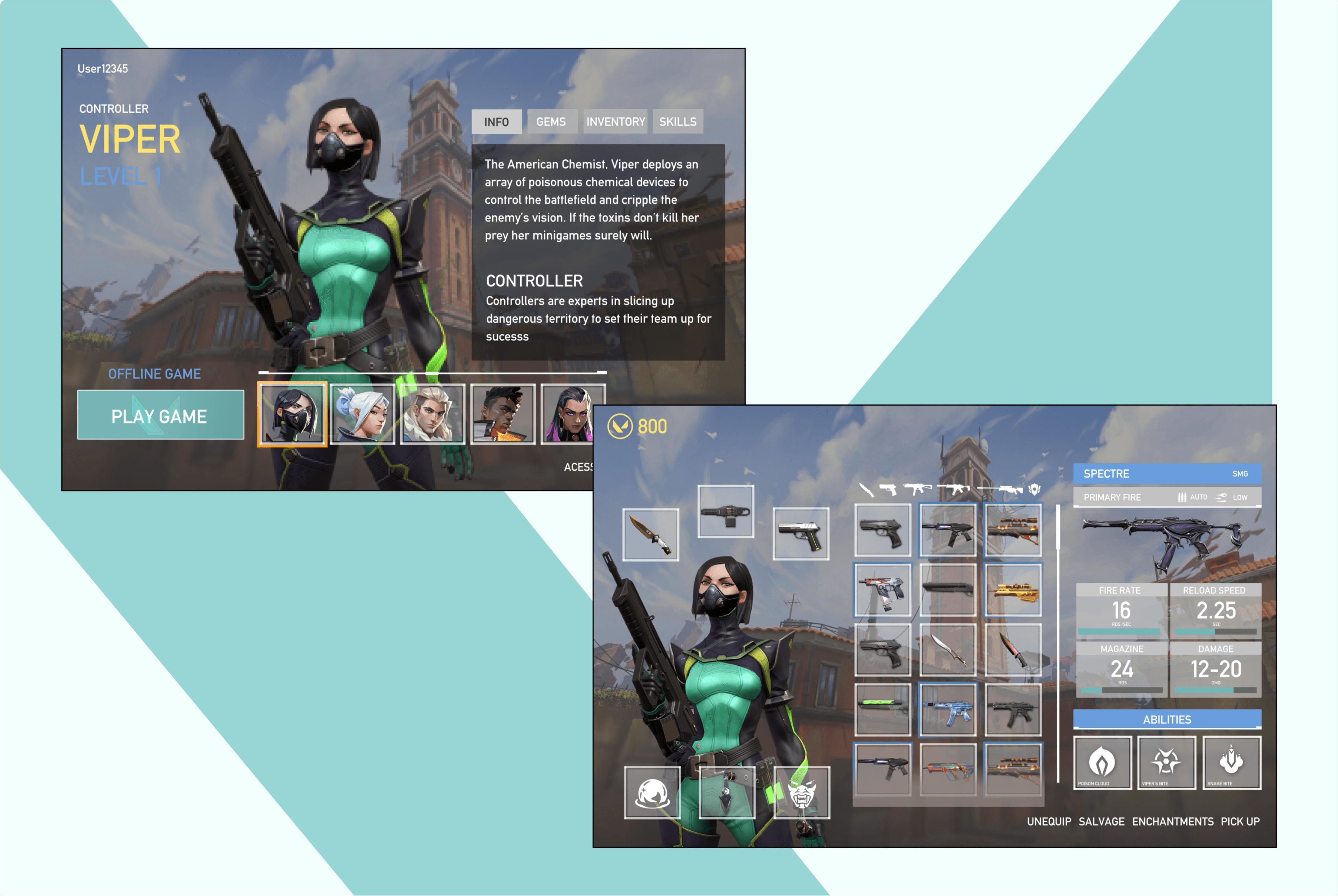 The Minecraft version of the mock-ups served as templates for the Valorant UI application.
