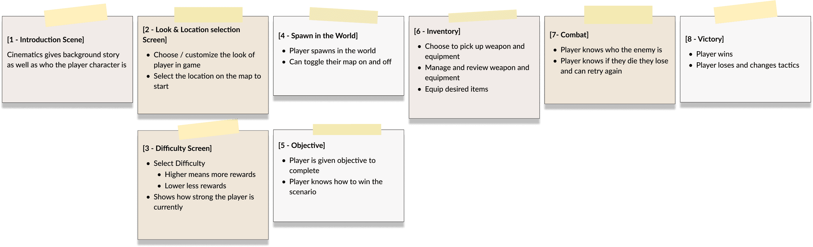 The initial Player Journey flow contained dense information. To sort and simplify this data into actionable design steps, I transitioned to low-fidelity tools.