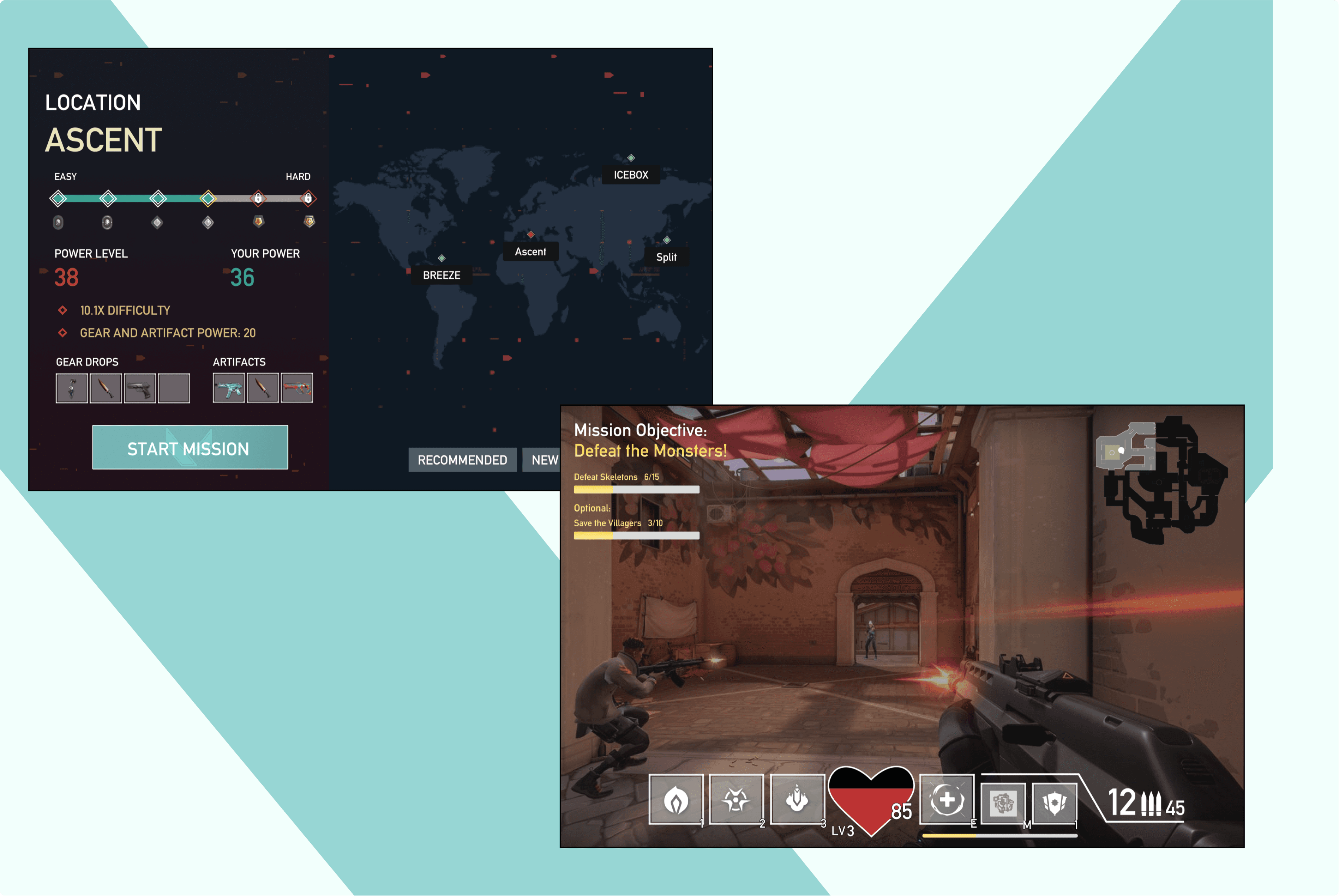 Design Strategy: Successfully applying the aesthetic and brand of Valorant to the structure of Minecraft Dungeons.