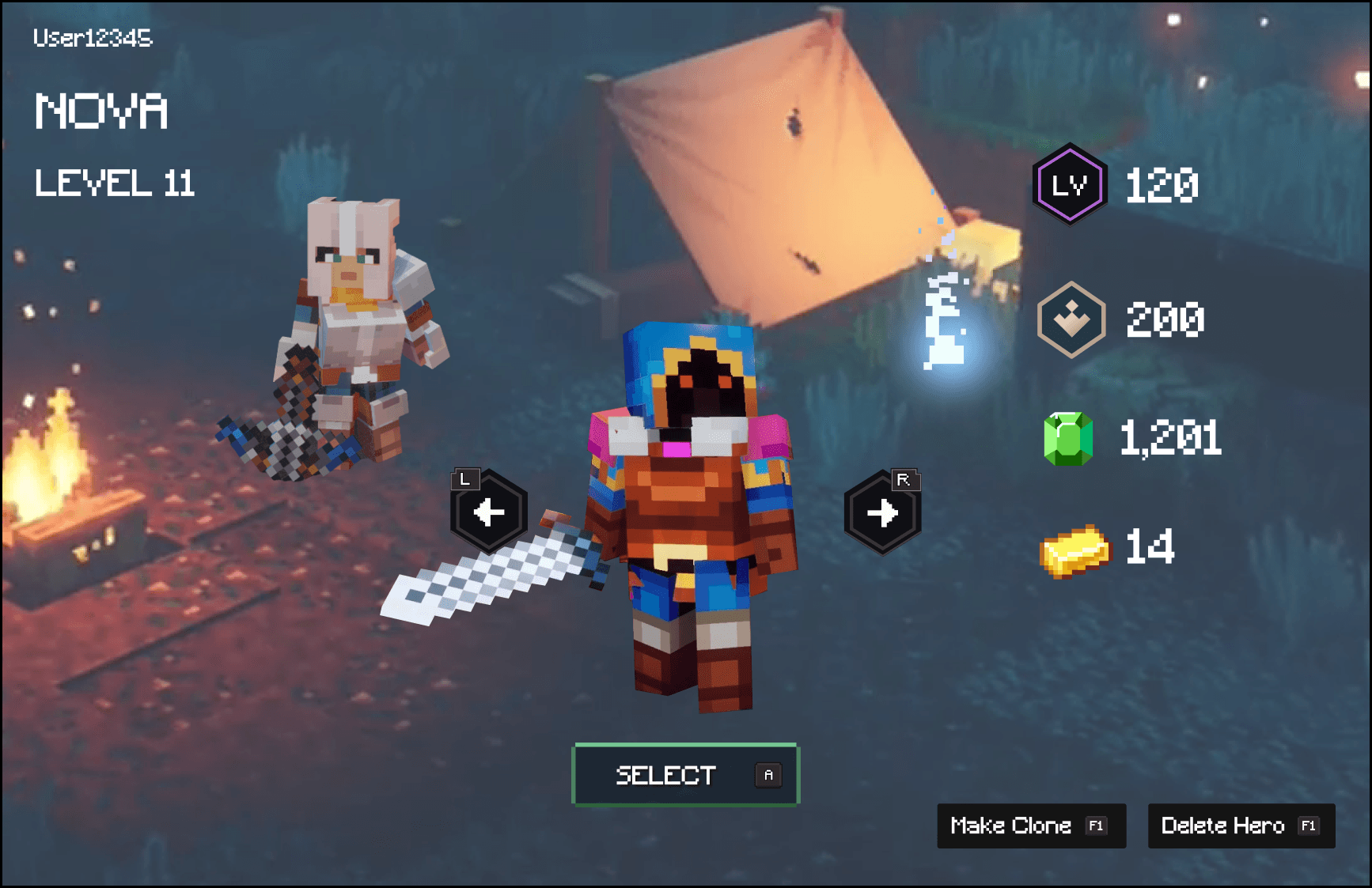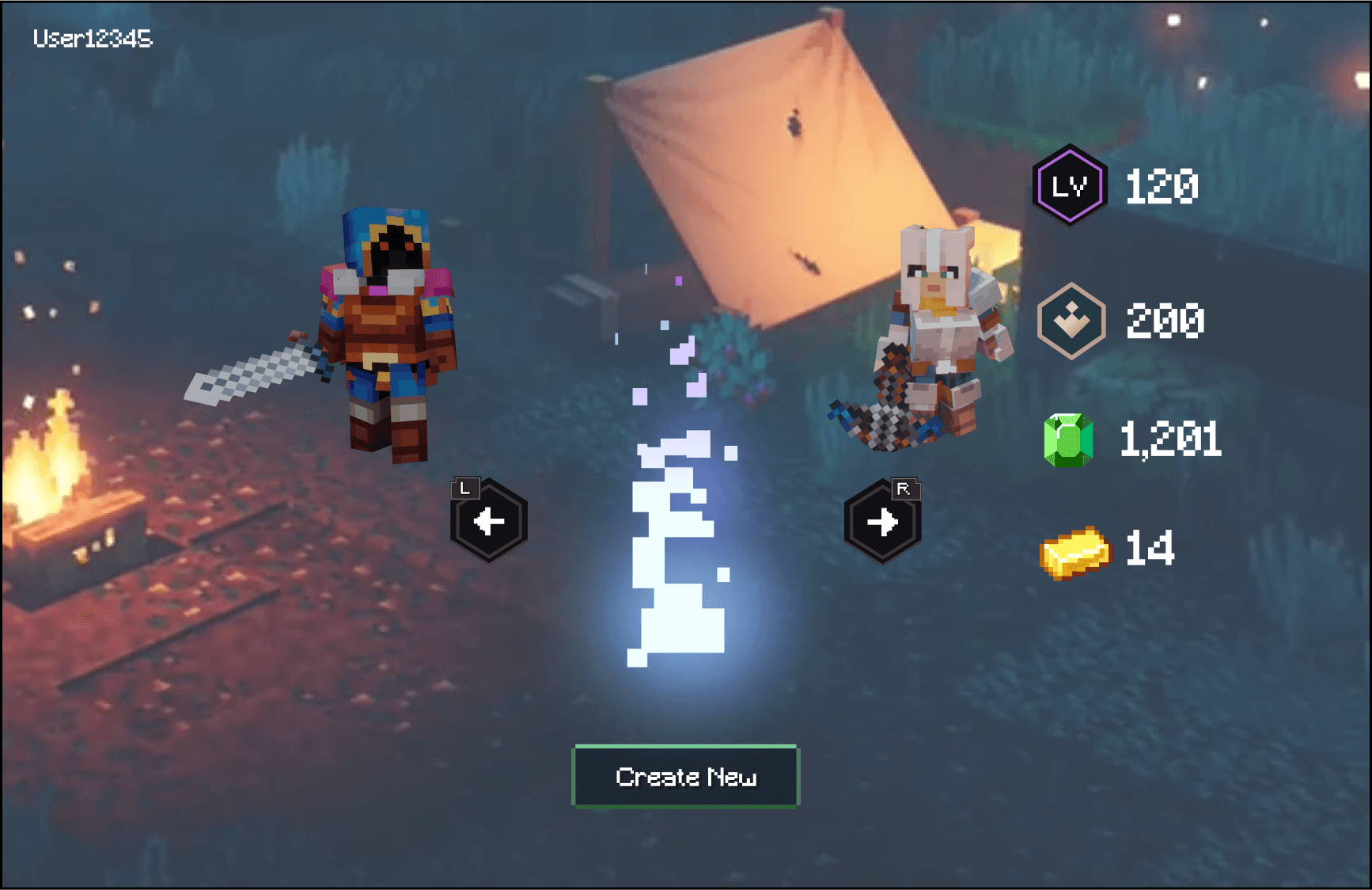 Art & UI Style Fidelity: The main challenge was applying and integrating the UI aesthetic and design of Valorant (an FPS) onto the existing action-adventure of Minecraft Dungeons.